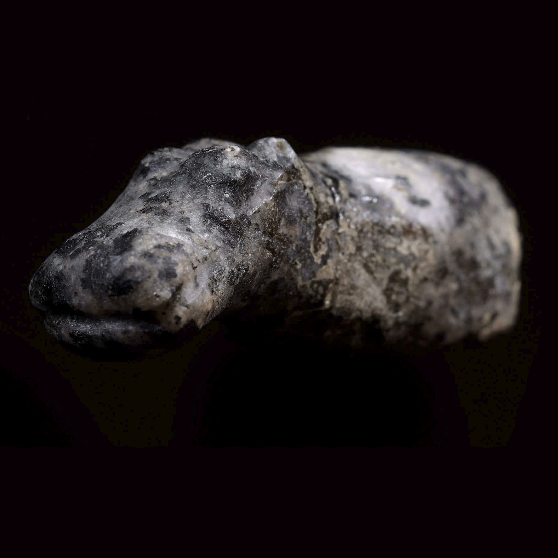 Amuleto de hipopótamo realizado en diorita, finamente tallado, Imperio Antiguo, 2400 a.C. / 3,7 x 1,2 x 1,2 cm
