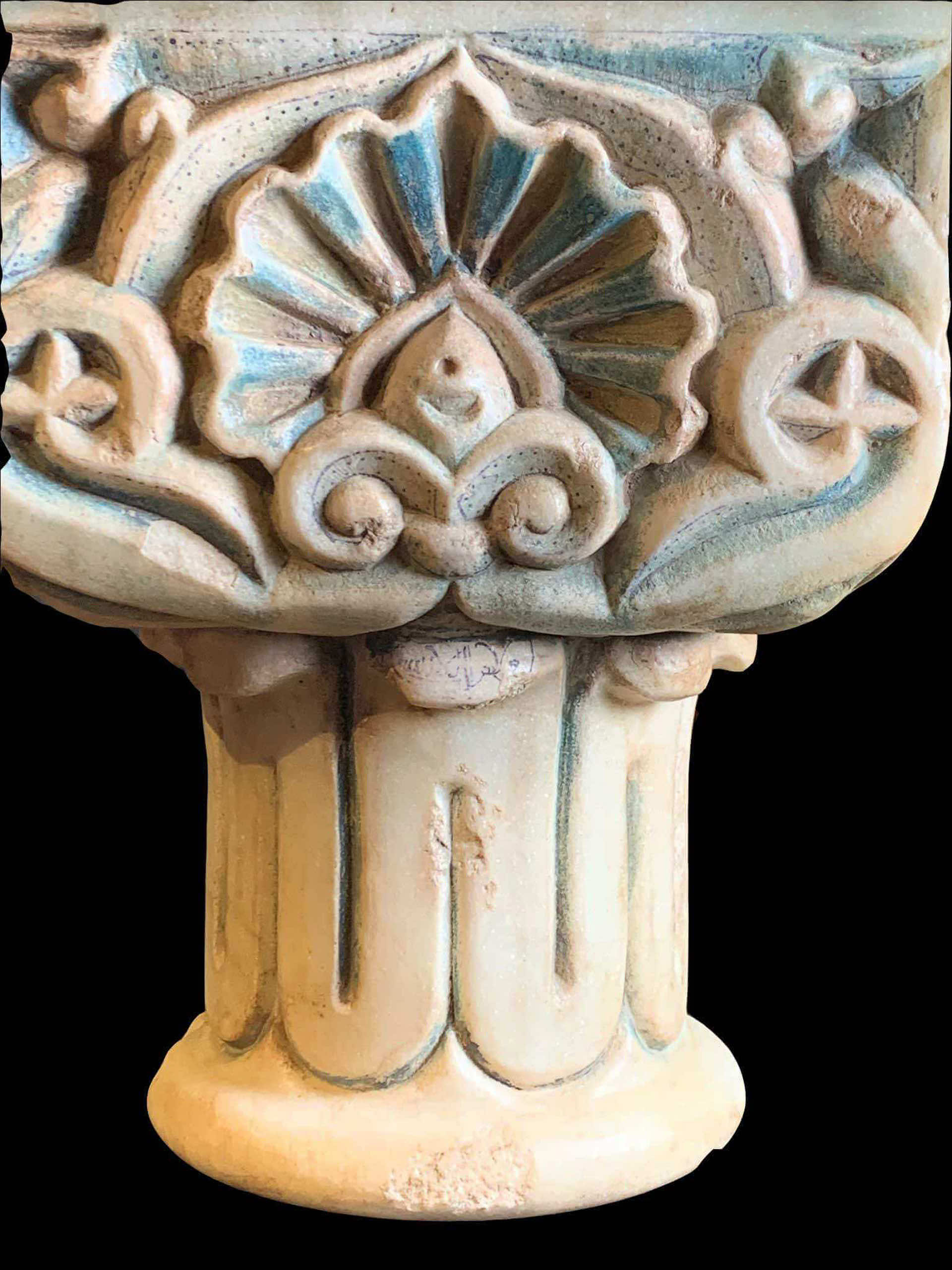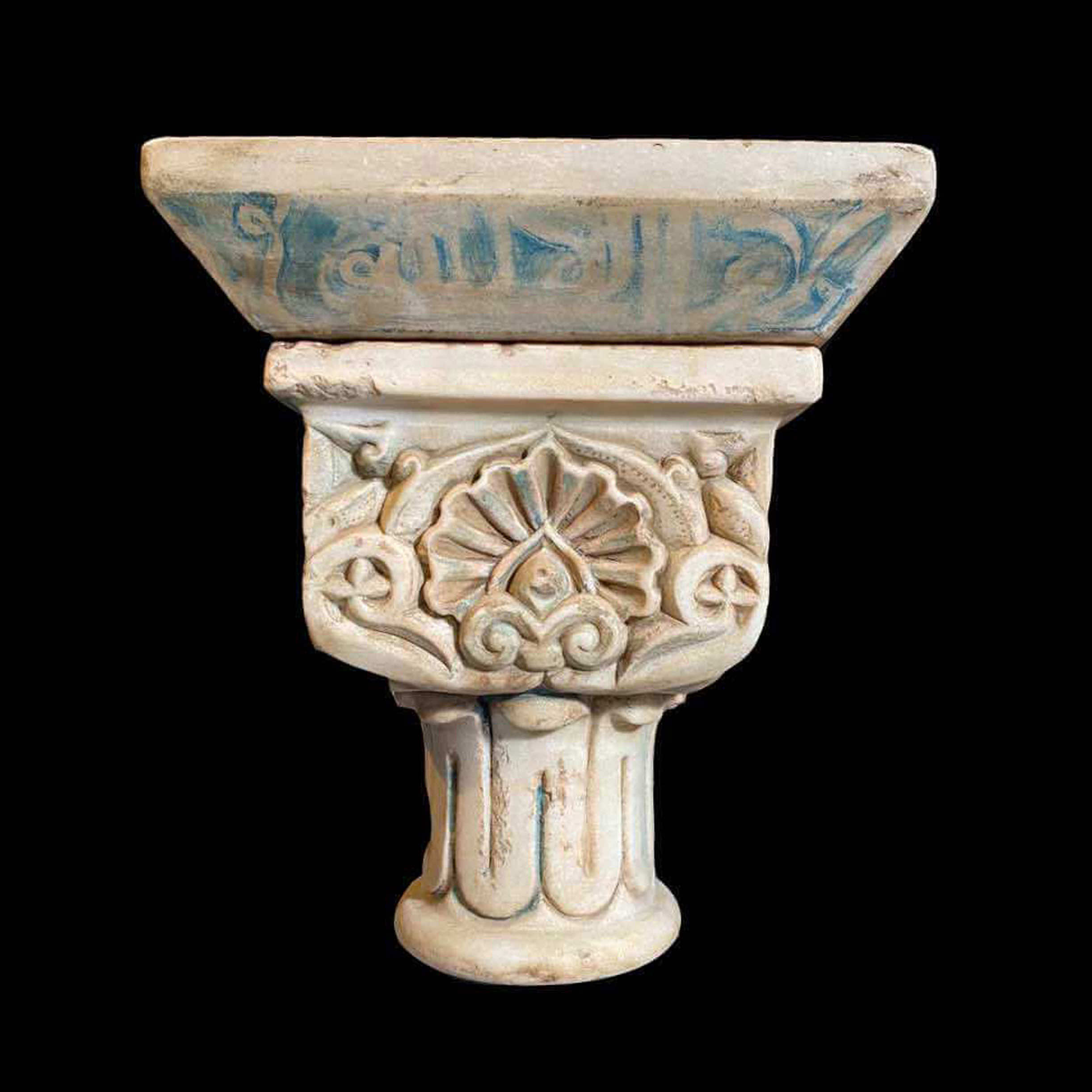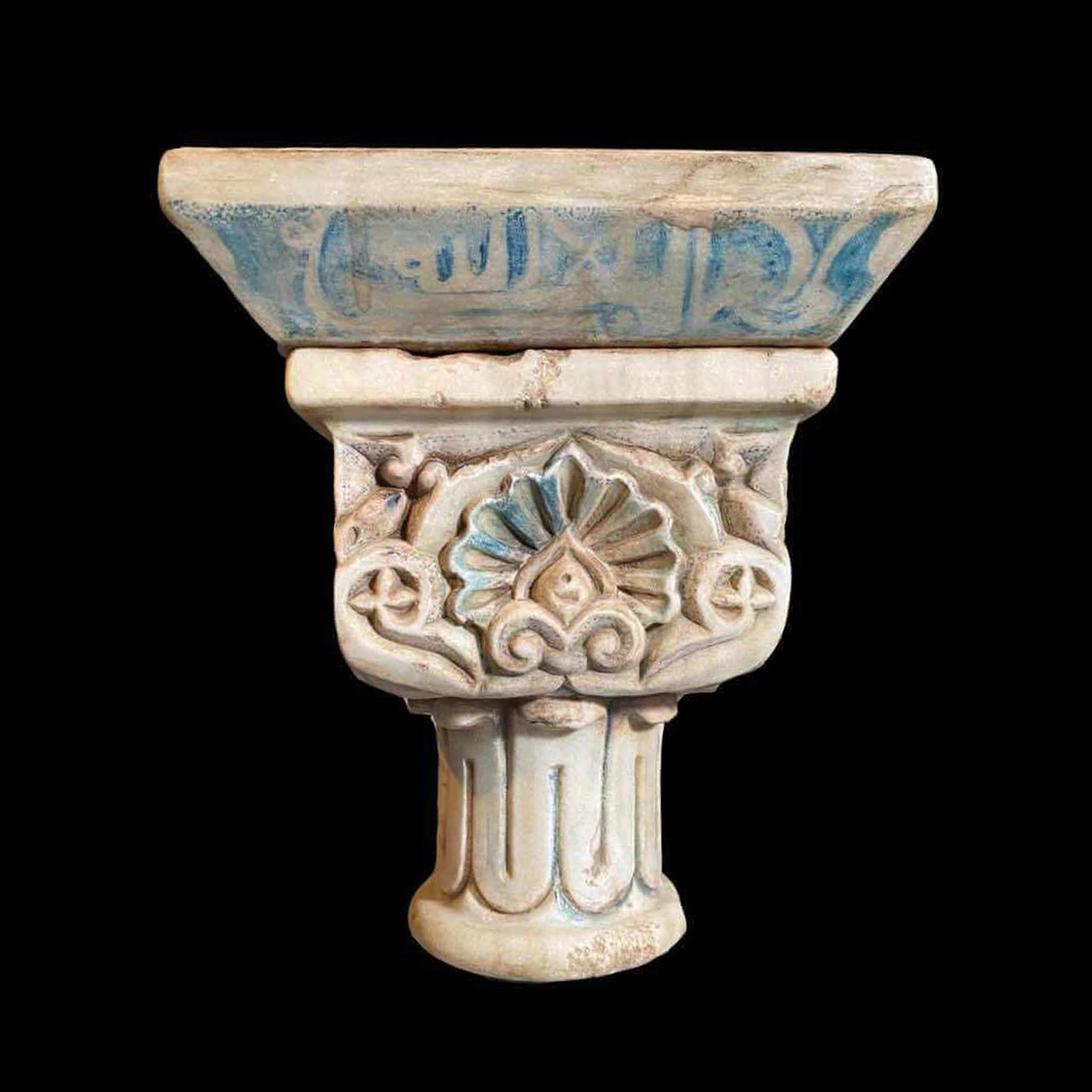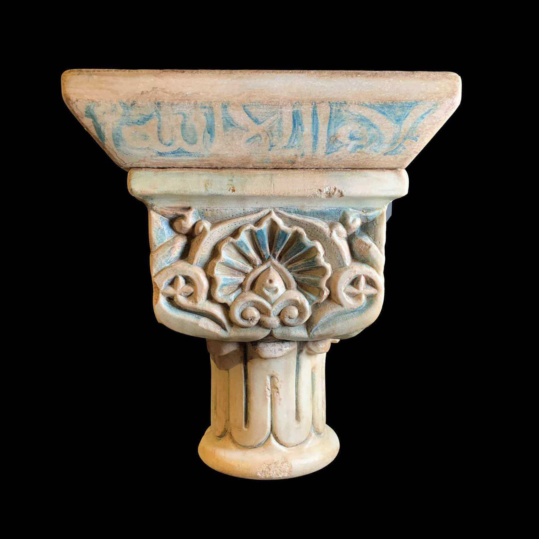 Capiteles como este formaban parte de columnas o pilastras en palacios, madrasas o mezquitas. Tenían una función tanto estructural como simbólica, y elevaban el carácter del edificio al que pertenecían. Aunque la policromía se ha desvanecido con el tiempo, aún quedan rastros de pigmentos azules y ocres, lo que sugiere que la pieza debió impactar por su colorido, como ocurría en lugares emblemáticos como la Alhambra de Granada.
